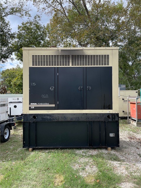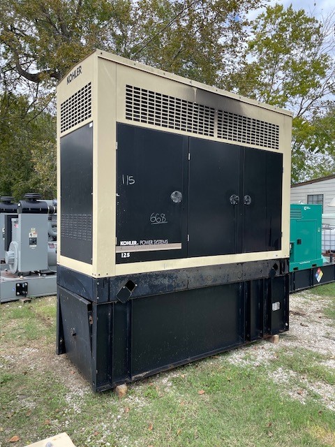 2008 Kohler 125REOZJD (125kW) stationary diesel generator. Comes w/ John deere engine, 120/208V, 60Hz, 1800RPM, base fuel tank, sound attenuated enclosure, US EPA Tier 3