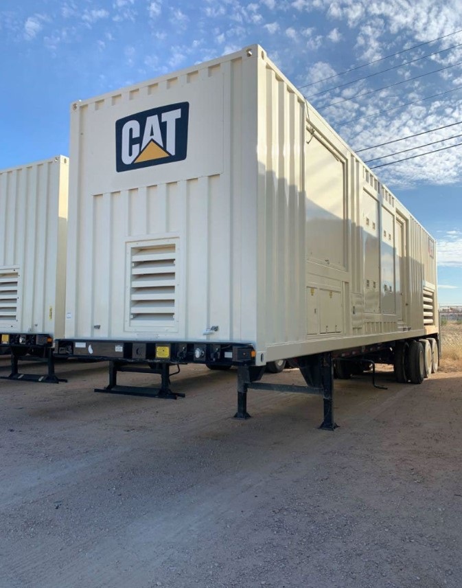 2012 CAT XQ1475G Natural Gas Power Module. Comes with G3516 engine rated for 480V, 60Hz, 3 Phase, 1800RPM. 4700 hours since overhaul. Includes: EMCP 4.2 Digital Controller, SR4B Gen End, Factory Sound Attenuated Enclosure, on a Tri Axle Trailer