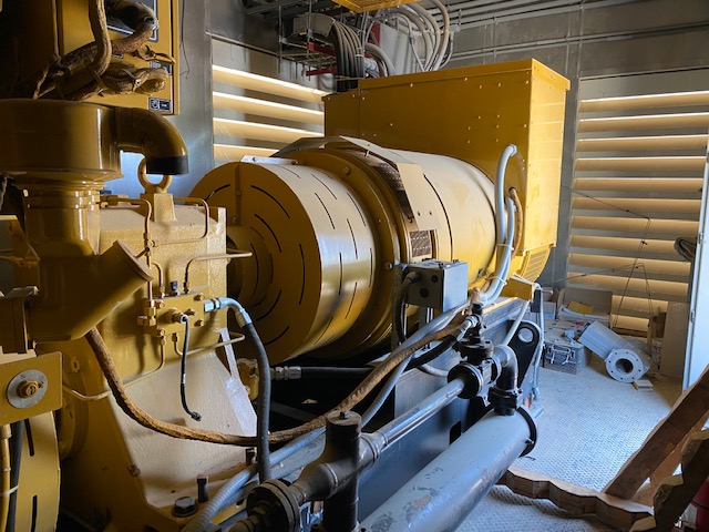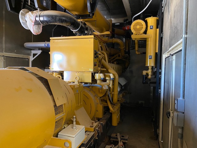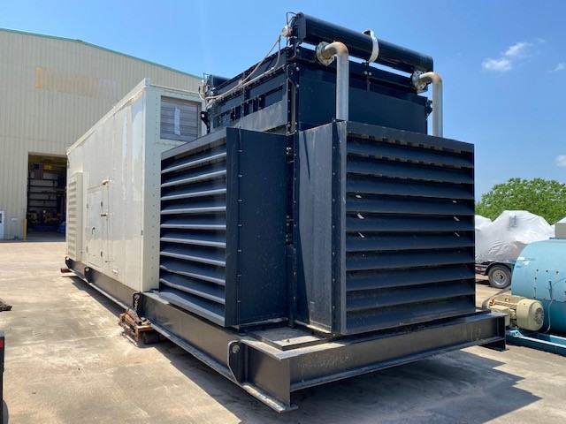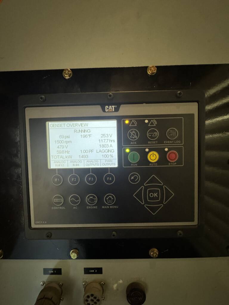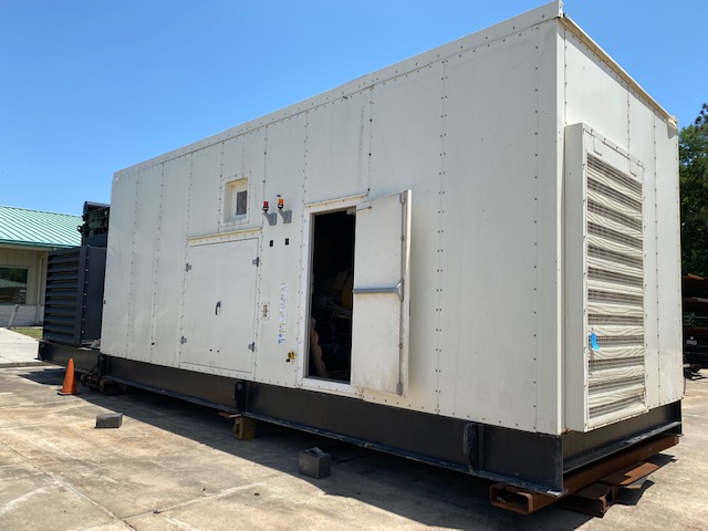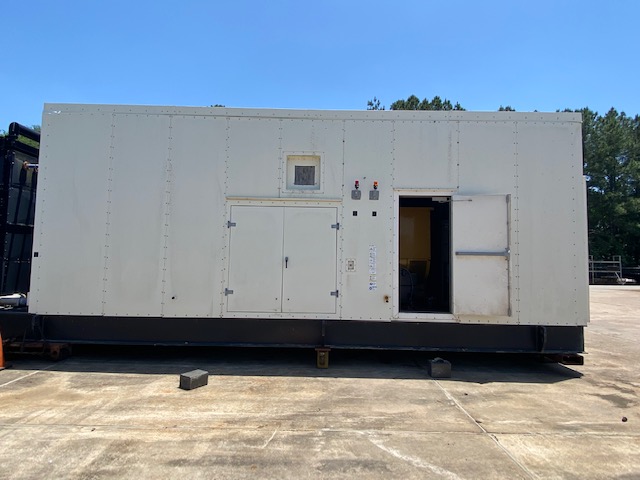 Rebuilt 2010 CAT G3516C 1500kW standby enclosed genset. Additional work includes new radiator cores, new fan motor, new 4.4 EMCP, and new gas train. Enclosed in walk in style sound attenuated enclosure with remote radiator mounted on one skid. Also includes Eaton 2500A electronic trip breaker, and Square D 24 kVA 480V to 120/240V transformer for auxiliary electrical components.