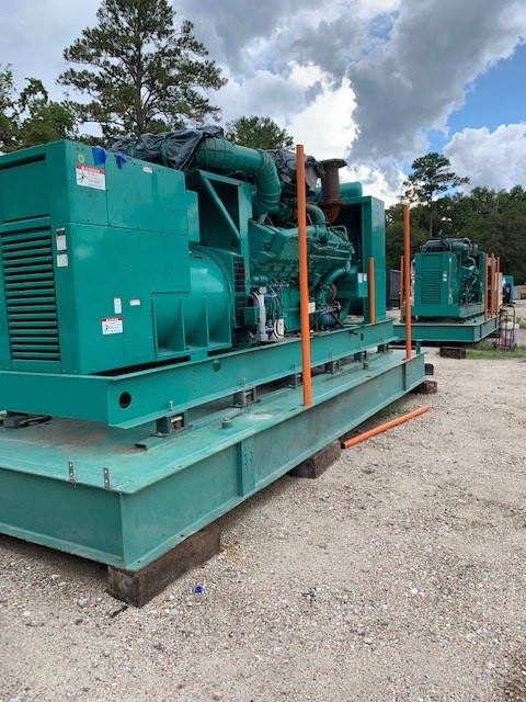 Standby Takeout Diesel Cummins 1500DFMB Generator. 2220HP, 3 phase, 60hz and 1000gal fuel tank. Unit comes w/ Cummins Power Command control panel, panel model 3300, exhaust silencers, heat exchanger cooler.
