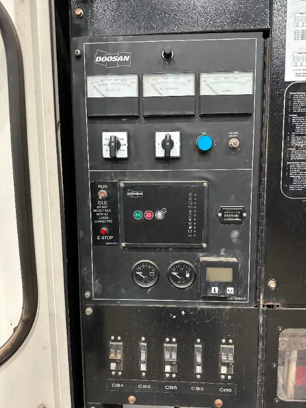2016 Doosan G240 Diesel Mobile Power Module. Comes w/ John Deere Tier 3 engine rated for 191kW at Prime, 600V Multi Voltage selector switch with transformer, 60Hz, 3 Phase, 1800RPM, Leroy Somer Gen end, auto start, pintle hook, weather proof enclosure, tandem axle trailer.