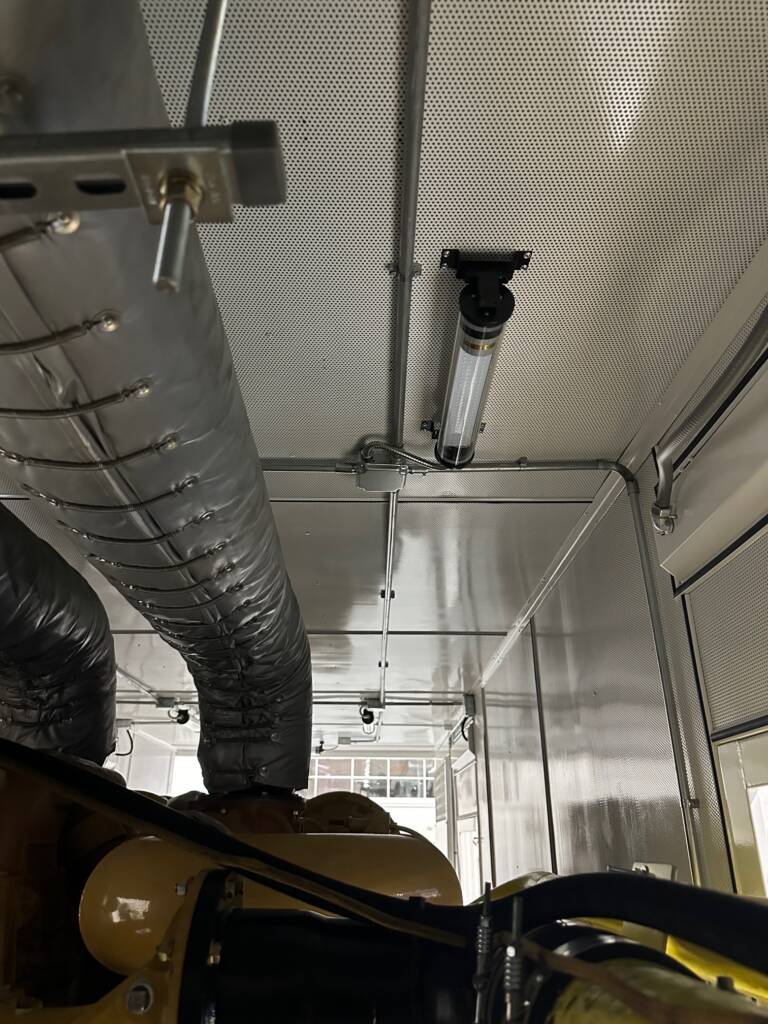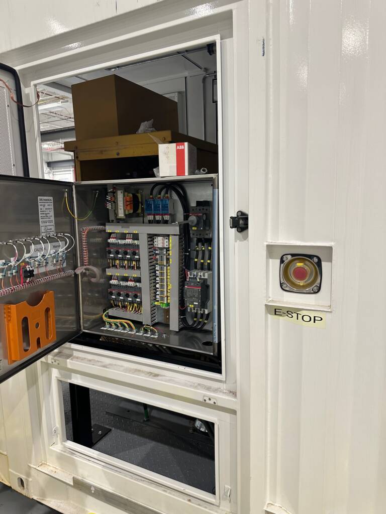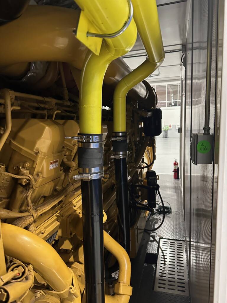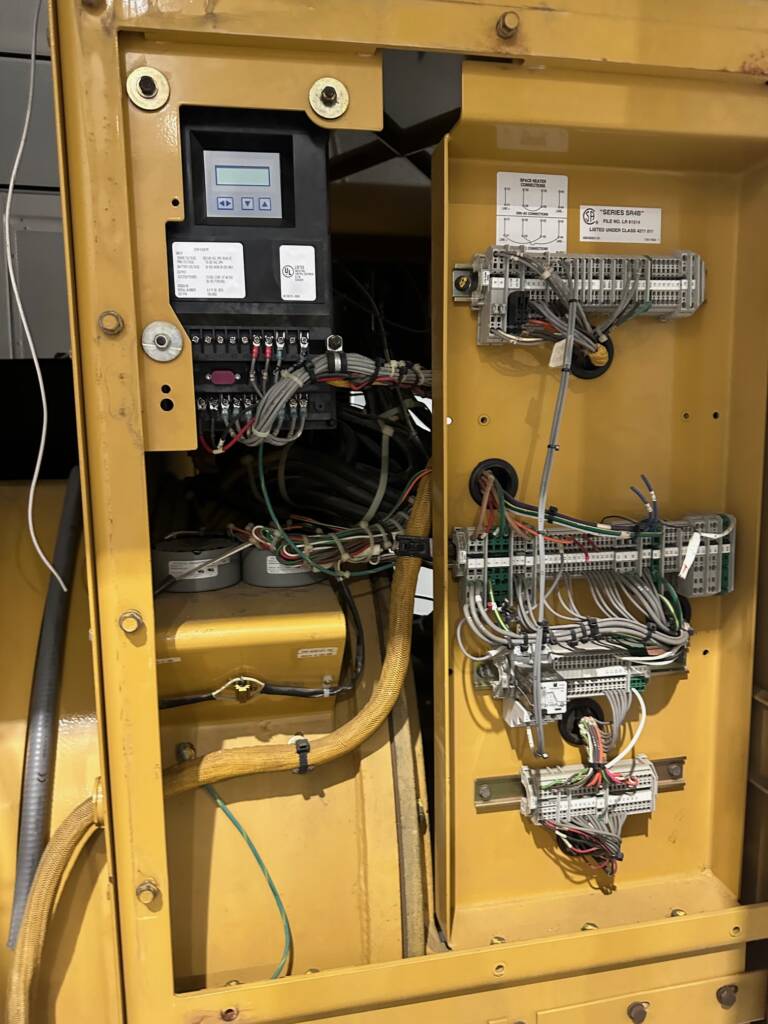 2000 CAT 3516B Diesel Power Module. Comes w/2000kW at 480V, 60Hz, 3 Phase, 1800RPM, CAT EMCP 4.4 Control Panel, outside E stop, outside access buss terminals, vertical discharge 6 fan radiator, 1250 gall double walled fuel tank, new chassis with title (not photographed) in a 45' sound attenuated custom container. Comes serviced, load tested with oil sample.