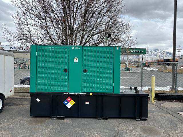 Used 2014 Cummins DSGAE 200kW standby/175kW prime enclosed genset. 60Hz, 12 wire. Includes a Onan digital PowerCommand control panel, electronic governor installed radiator, breaker, jacket water heater, muffler, non sound attenuated enclosure, and base fuel tank.
