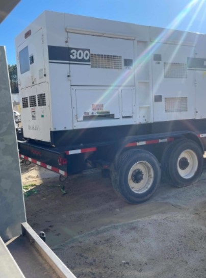 2015 Multiquip DCA300 Mobile Diesel Generator Set. Comes rated for 264kW at Standby, 480V, 60Hz, 3 Phase, 1800RPM. Includes: Auto Start, Camlok Connections in a sound attenuated enclosure on a tandem axle trailer.