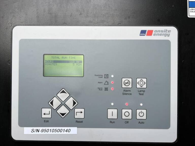 2017 MTU DS350 Stationary Diesel Genset. Comes w/MTU 8V16 Engine Rated for 350kw/Standby, 480V, 60Hz, 3 Phase, 1800RPM. Includes: Marathon Alternator, MTU Digital Control Panel, in a Sound Attenuated Enclosure on Sub Base Fuel Tank. EPA Tier 3
