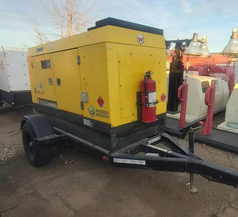 2013 Wacker Neuson G50 Mobile Power Module. Comes w/John Deere diesel engine (38kW/47.5kVA), 480V Multi voltage selector switch, 1800RPM, 3 Phase, 60Hz, Stamford Gen End, 165 gallon double walled fuel tank, sound attenuated enclosure, on a single axle trailer.