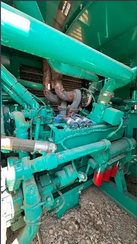 Used 1999 Cummins GTA28 480kW standby. Includes Onan control panel, Newage gen model, altronic ignition, electronic governor, and full weather enclosure with dual mufflers.