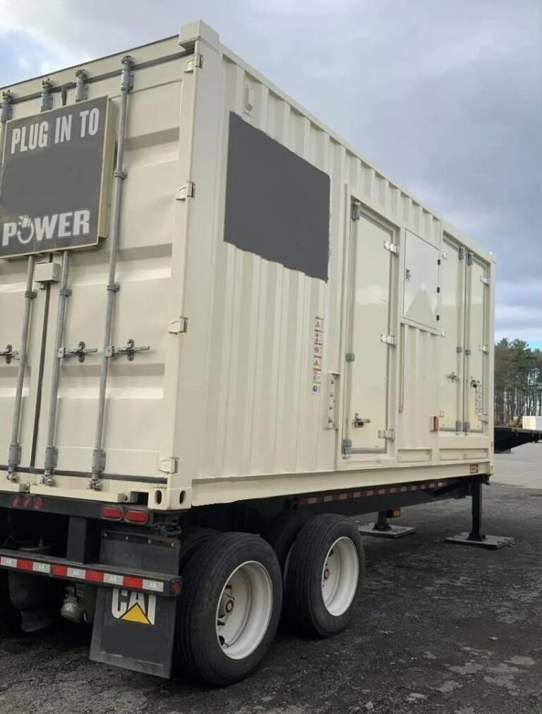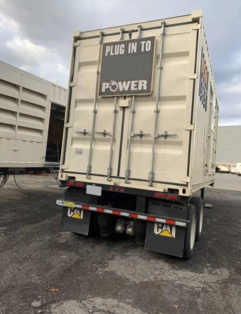 600kW power module in a sound attenuated enclosure mounted to a dual axle chassis. The engine has 662 hours since Cat dealer rebuild and the generator end was dipped and baked with a new bearing installed. Tier 3 emissions. 480v and 208v 3 phase. Caterpillar EMCPII control panel, 800 gallon double wall fuel tank, 2500a circuit breaker, bus bar connections, 30a shore power load distribution panel, battery charger, critical grade muffler, 5 step portable aluminum ladder with storage, trailer deck, and air ride suspension