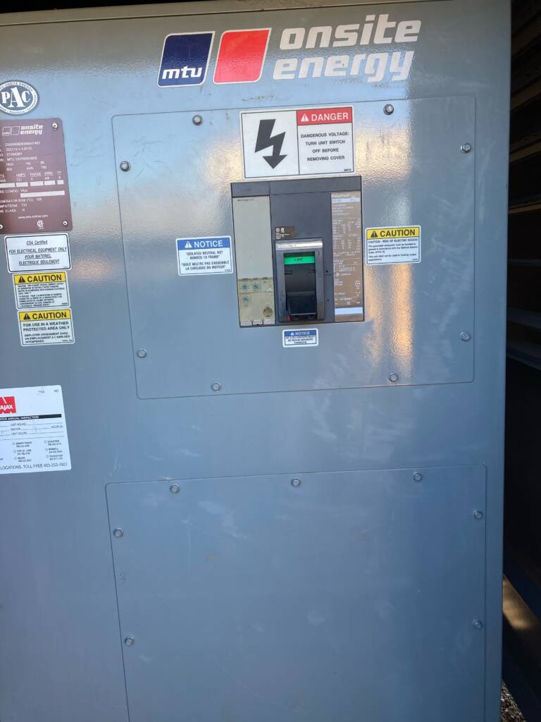 One MTU Model DS600 , 600kW Standby, 347/600V Diesel Generator Packaged in a Paramount Enclosure c/w MTU 12V1600G80S diesel engine, CSA certified, 12 Hour sub-base fuel tank, genset mounted 600A main circuit breaker, Battery Charger, MTU DGC-2020 Controller, ECU (MTU) Governor), Marathon Alternator, in a Sound Attenuated Weatherproof Enclosure. Will come tested and serviced.